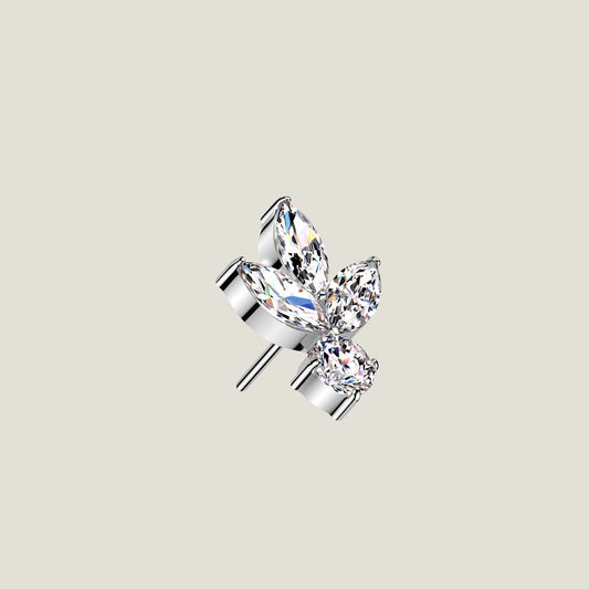 Implant Grade Titanium Threadless Push In 3 Marquise CZ Leaf With Round CZ Top