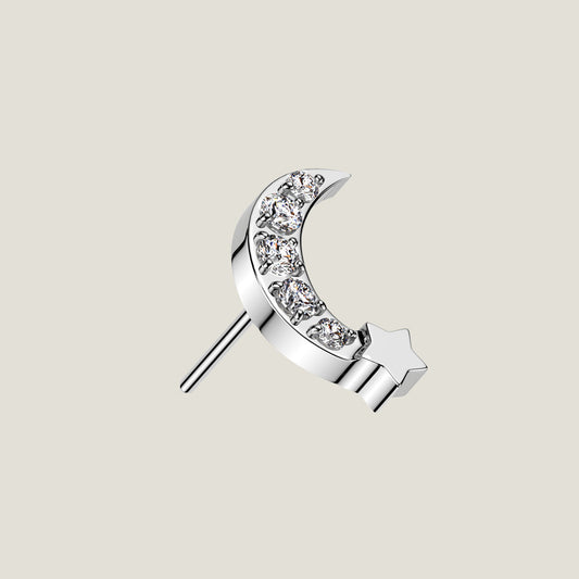 Moon and star 316L Surgical Steel Threadless Push In 5 CNC Set CZ R2