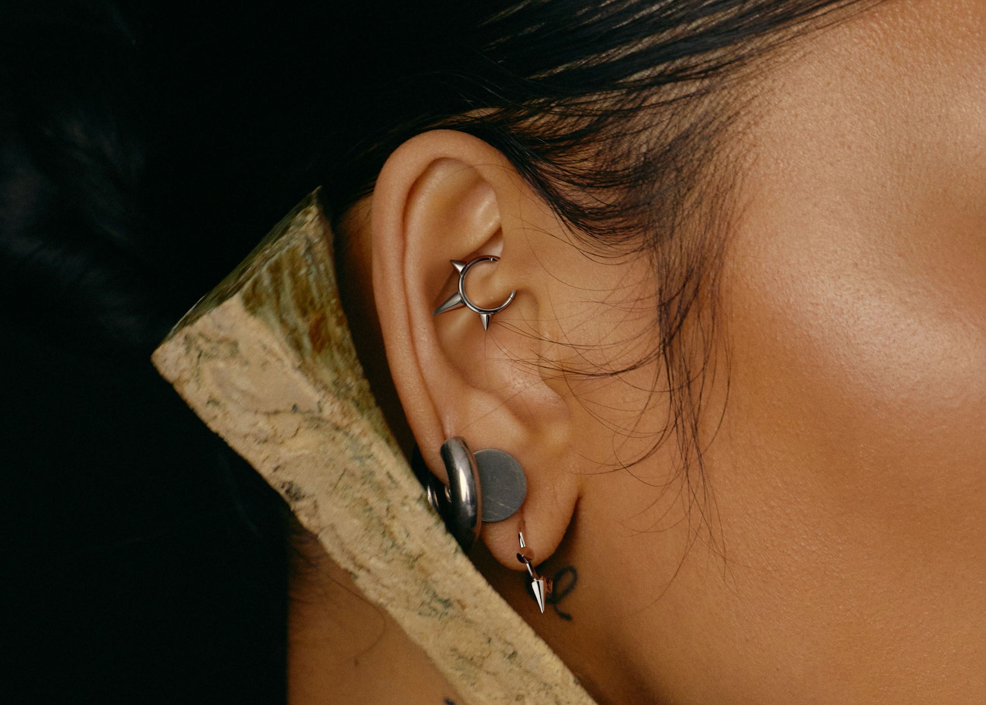 Made from implant-grade titanium, this 8mm/16G hinged segment hoop ring features a bold spiked design for a distinctive look. Its versatile style makes it suitable for various piercings, ensuring durability and comfort.
