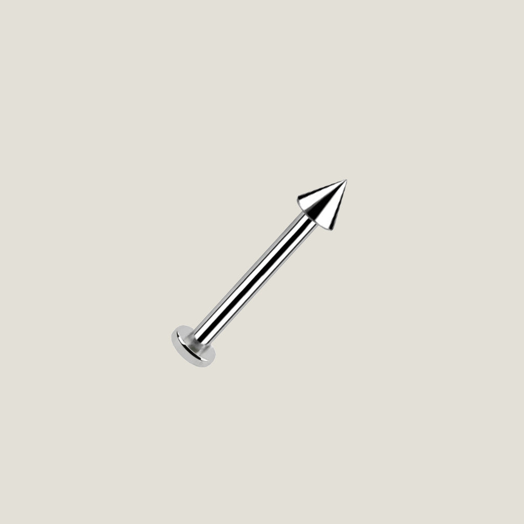 Crafted from implant-grade titanium, this spiked labret combines an edgy design with a comfortable fit. Its durable and hypoallergenic material ensures long-lasting wear and skin-friendly performance.